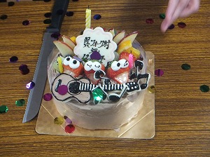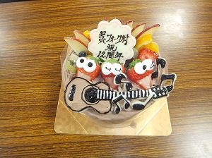 なんと,ケーキ屋さんに細かくお願いしなくても,ギターや音符のデコレーションをしていただけるとか。