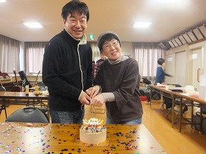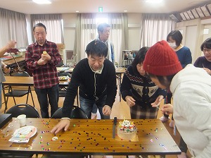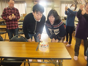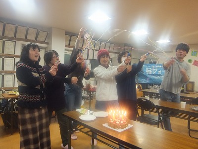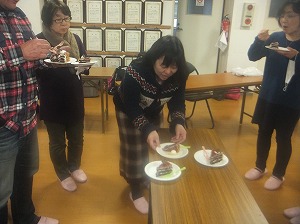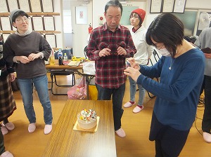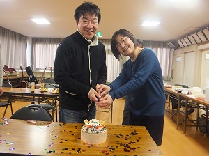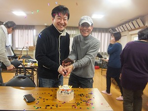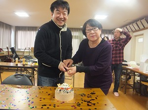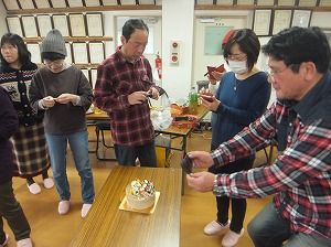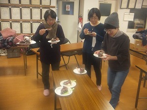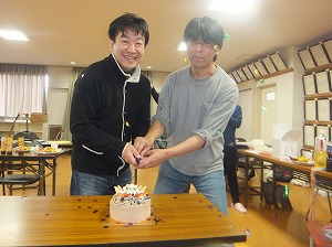 みんなで写真いっぱい撮って,みんなでケーキカットの写真も撮って,12等分に切り分けて,みんなで美味