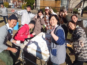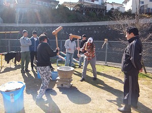 おかげさまライブは12時30分集合ですので,遅くても12時までにはすべての餅をつき終えて,餅つき道具