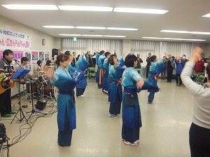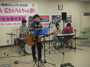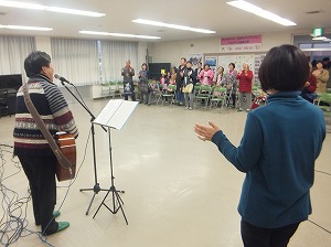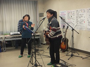 の演奏時間,最後にみんなで歌う時間すべてに,当たり前のように呉フォーク村の演奏をさせていただけ