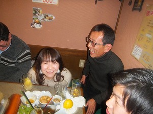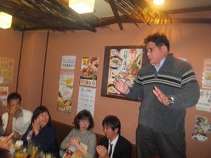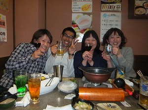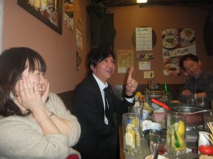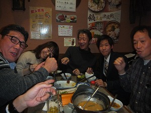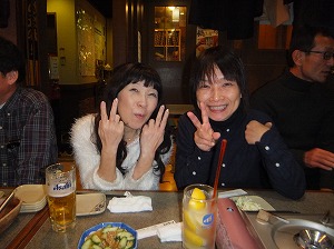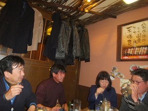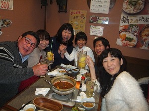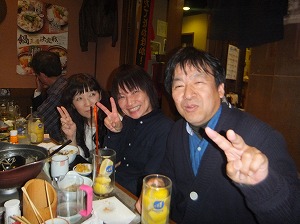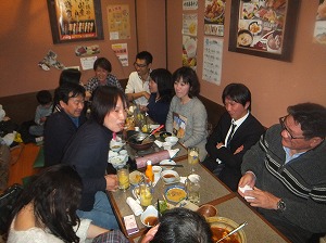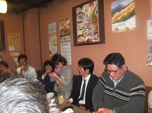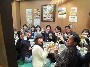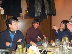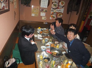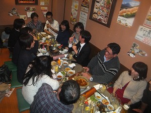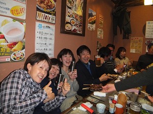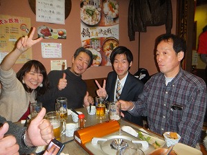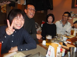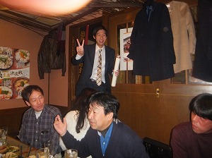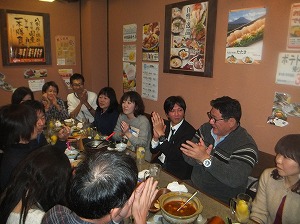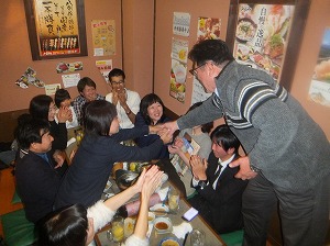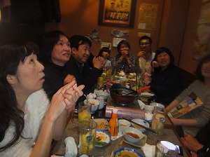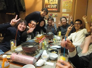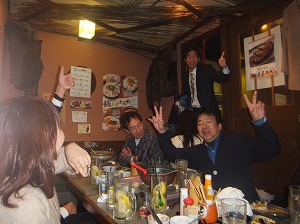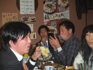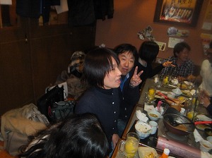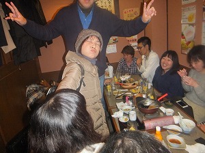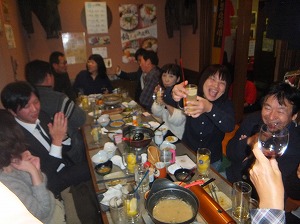 ぎゅうぎゅう詰めで肩寄せ合っての大宴会。