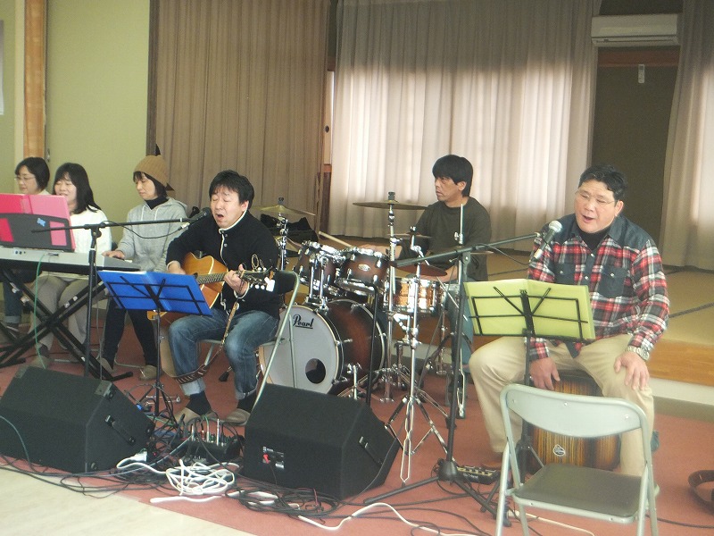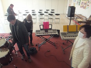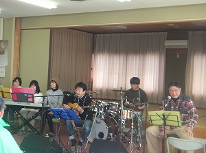 今まで一度も合わせたことのない「北国の春」「与作」など,デイサービスでよく演奏する曲をしっかり聞いて