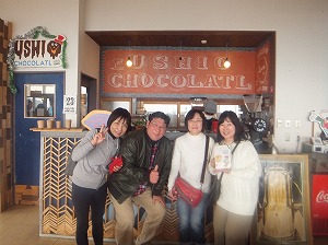 「元就。」 で紹介されていたのを見られたそうですが,チョコ レート工場「USHIO CHOCOLATL (ウシオチョ
