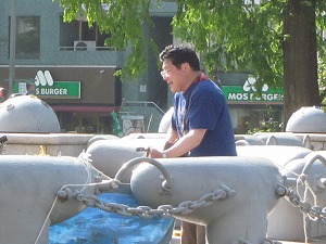 後片付けを始めた頃,初かえで橋のタカちゃんが応援に来てくれた。
