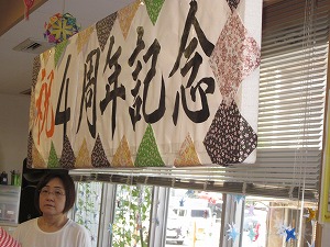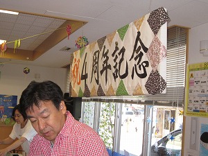 「4周年記念」と大きく描かれたボードを中心に,横に広くスペースを作っていただきました。